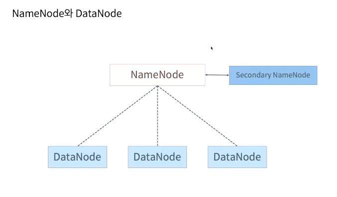 데이터 노드들이 워커 역할을 담당한다. Namenode는 메타 데이터 즉 어떤 정보가 저장되어있는지 나와있다.