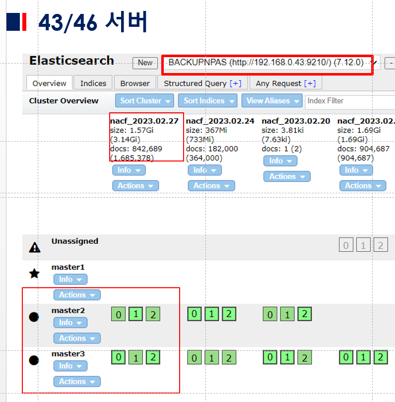 또한 43번과 46번 서버의 그림을 보시면 샤드의 분배가 2개 1개씩 되어있는것을 보실수있습니다.