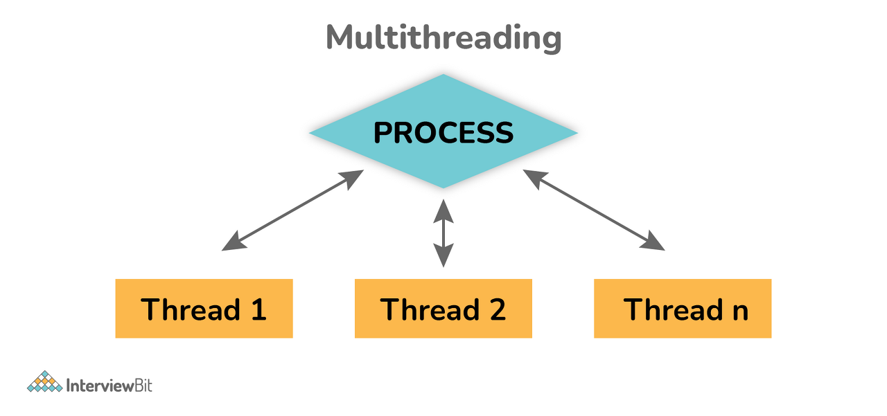 멀티스레딩 이란 프로세스 내 작업을 여러 개의 스레드, 멀티스레드로 처리하는 기법이며 스레드끼리 서로 자원을 공유하기 때문에 효율성이 높습니다.