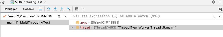 "before start a new thread" 전에 첫 중단점이 뜹니다.