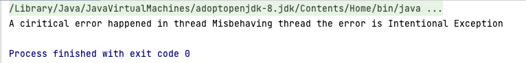 이대로 프로그램을 실행하면 Misbehaving thread에서 Intentional Exception이라는 에러 메시지가 발생했다고 뜹니다.