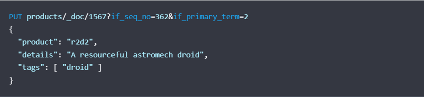 Elasticsearch는 저장된 각 문서를 변경한 마지막 작업의 시퀀스 번호와 기본 용어를 추적합니다. 시퀀스 번호와 기본 용어는 GET API의 응답에서 _seq_no 및 _primary_term 필드에 반환됩니다