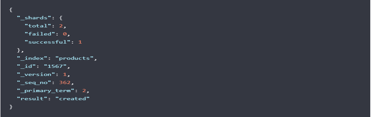 응답 및 필드에서 할당된 시퀀스 번호와 기본 항을 볼 수 있습니다. _seq_no, _primary_term