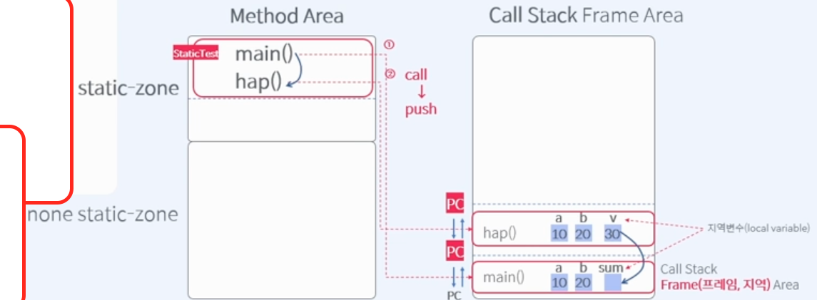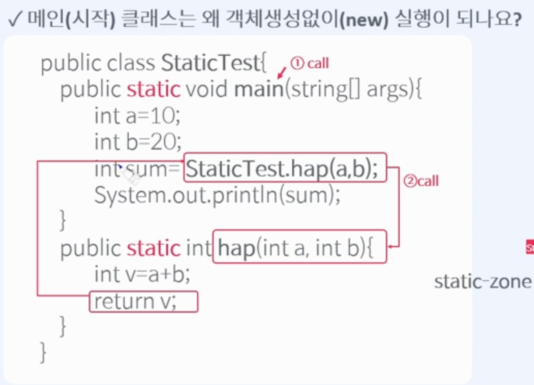 3. JVM 이 static-zone에서 main()메서드를 호출한다.