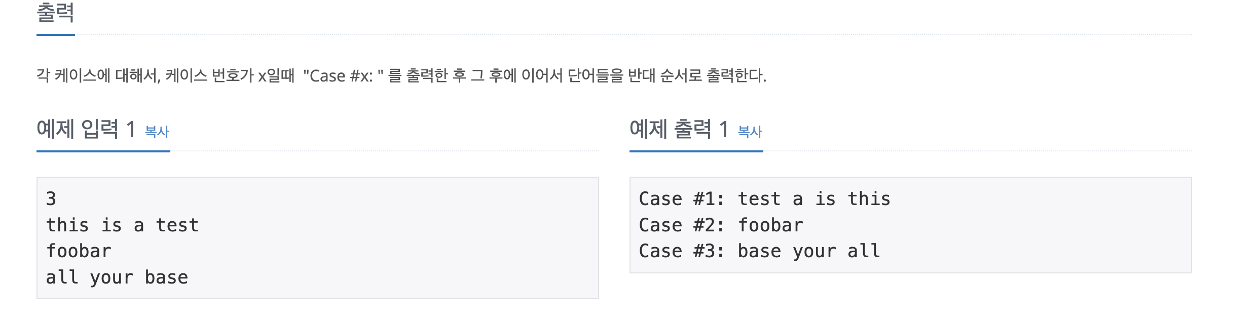 //System.out.print("Case #" + i + ":");를 출력해 현재 테스트 케이스 번호를 출력합니다.