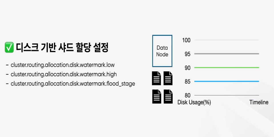 노드에 사용 가능한 디스크를 고려해서 샤드를 할당할 수도 있습니다.