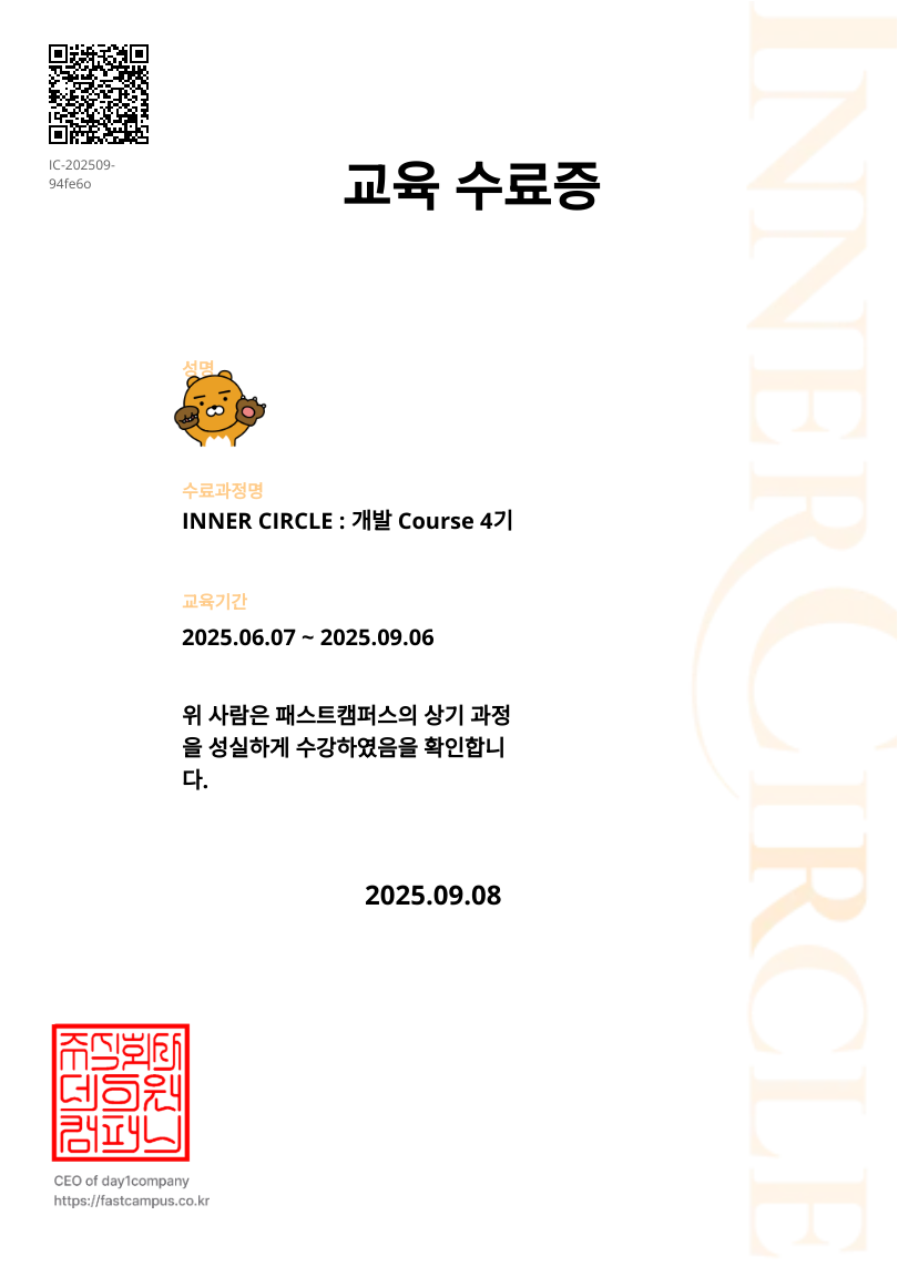 9월 3일 토요일을 끝으로 패스트캠퍼스 InnerCircle 4기가 잘 마무리 되었다.