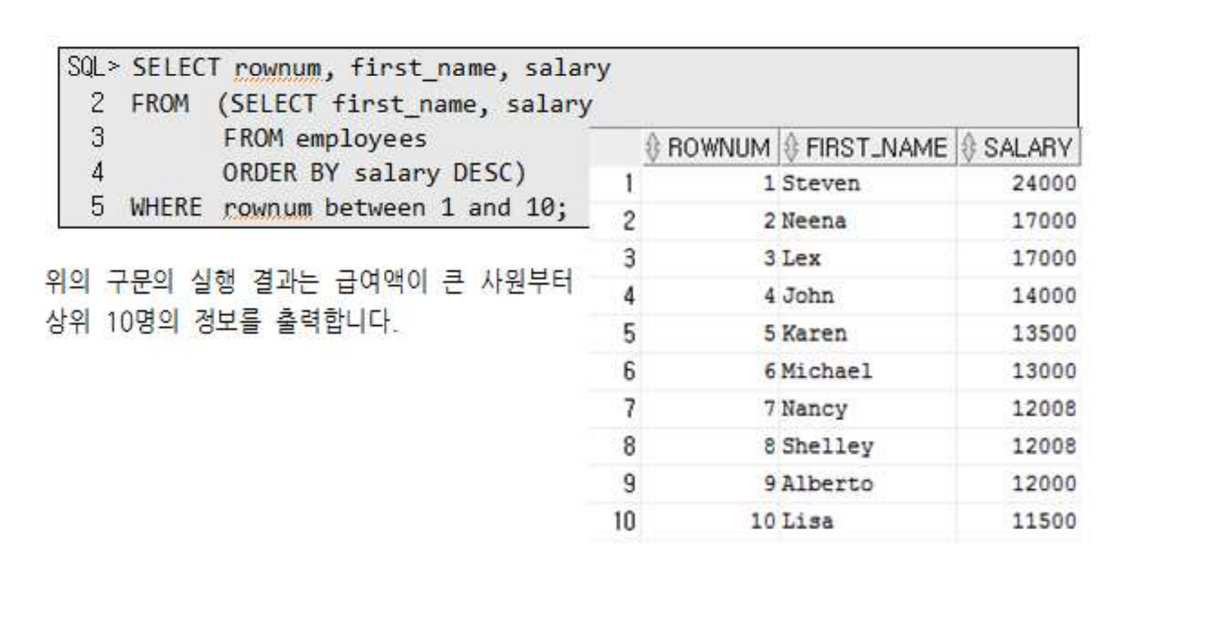 뷰는 하나의 독립적인 select문이므로 from 절에 사용하는 서브쿼리도 하나의 뷰로 볼 수 있습니다.