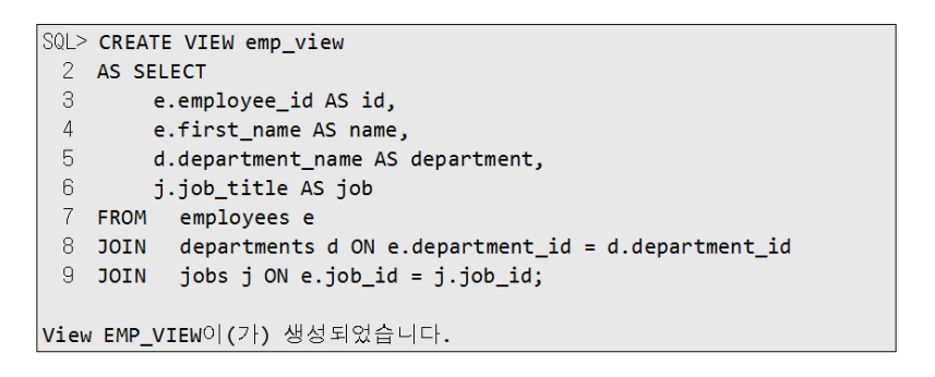 - CREATE OR REPLACE VIEW 절을 사용하여 뷰를 수정합니다.