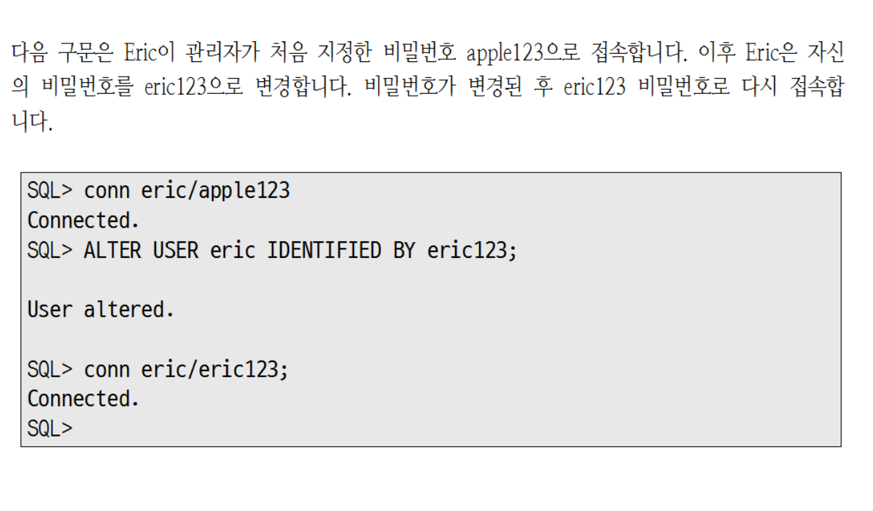 사용자는 ALTER USER 문장을 사용하여 자신의 비밀번호를 수정할 수 있습니다.