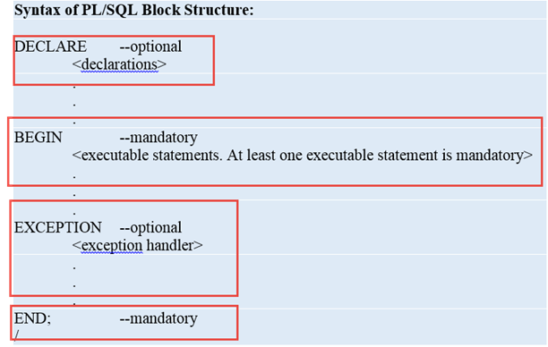 기본 PL/SQL 구조입니다.