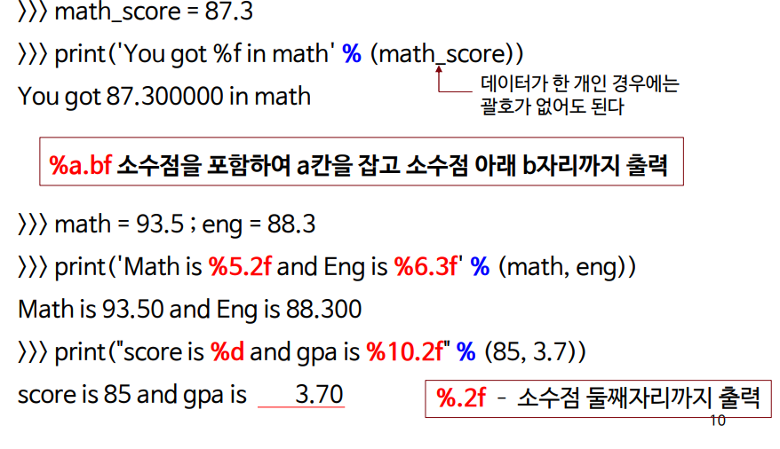 출력문 - % 이용한 서식 출력 ( 문자열, 정수)
