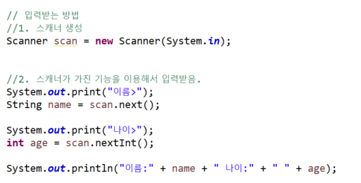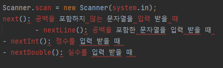 ex) scan.next(), scan.nextLine(), scan.nextInt(), scan.nextDouble() 등