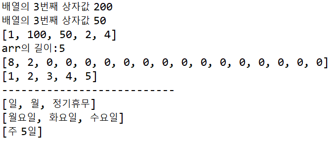 배열의 3번째 상자값 200을 나중에는 배열의 3번째 상자값이 50으로 바꿀수있습니다.