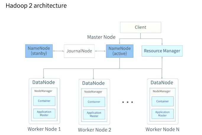 2.0에서는 하둡1.0에서 4만개 이상의 테스크를 동시에 실행하지 못하는 문제를 Resource Manager와 Application Master의 분리로 해결하였습니다.